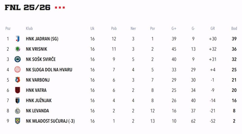 U 18. kolu FNL-a NK Sloga pobijedila je HNK Vatru rezultatom 3:1. Golove za Slogu postigli su Karlo Vidović (2) i Marko Lušić.